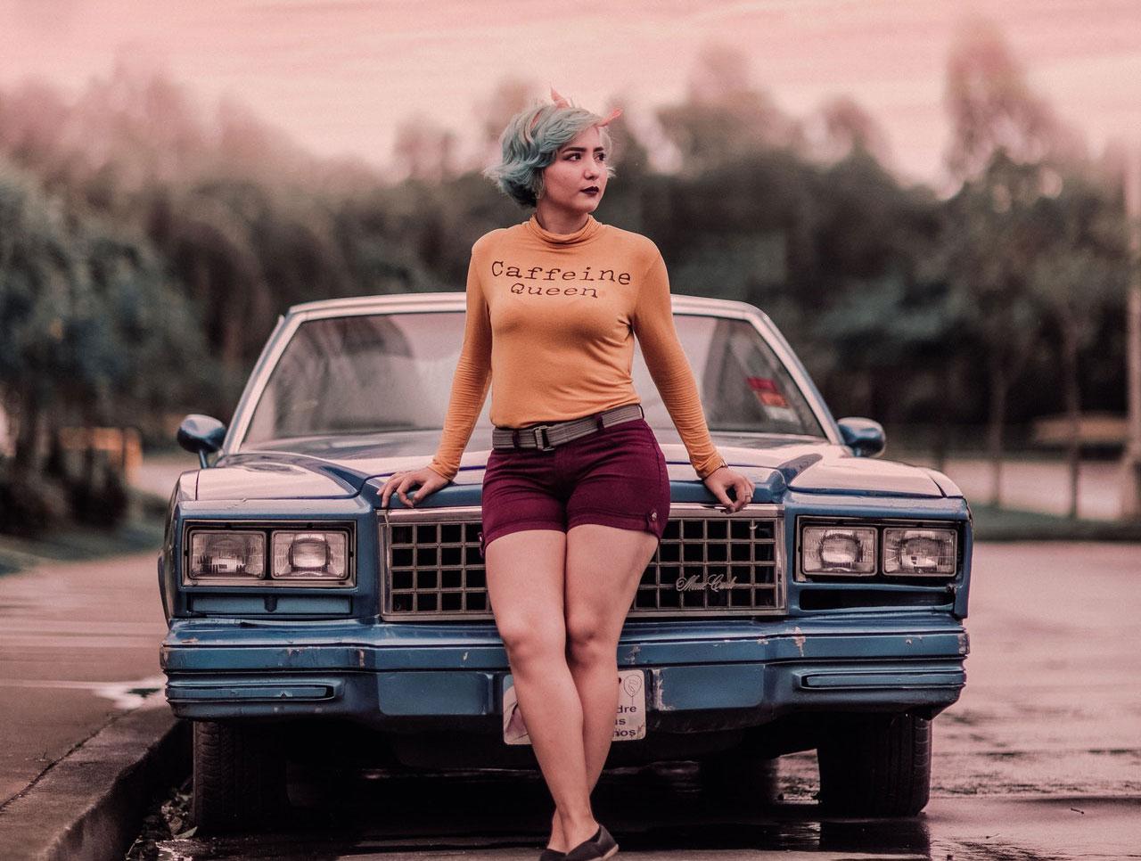 Confidence is Key: Just like the model in this image, you'll feel confident and in control, knowing you have 24/7 support and a high-quality car beneath you.